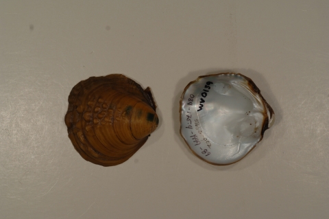 NCTC Freshwater Mussels Teaching Collection: Order: Unionoida Family: Unionidae Genus (ITIS): Amphinaias Species: pustulosa Williams et al.: Quadrula pustulosa Use to be: pustulosa pustolusa Location Name: Location State: WV