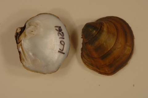 NCTC Freshwater Mussels Teaching Collection: Order: Unionoida Family: Unionidae Genus (ITIS): Amphinaias Species: pustulosa Williams et al.: Quadrula pustulosa Use to be: pustulosa pustolusa Location Name: Mississippi River near Cordova Location State: IL