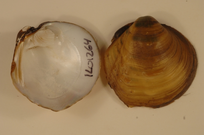 NCTC Freshwater Mussels Teaching Collection: Order: Unionoida Family: Unionidae Genus (ITIS): Amphinaias Species: pustulosa Williams et al.: Quadrula pustulosa Use to be: pustulosa pustolusa Location Name: Mississippi River near Cordova Location State: IL