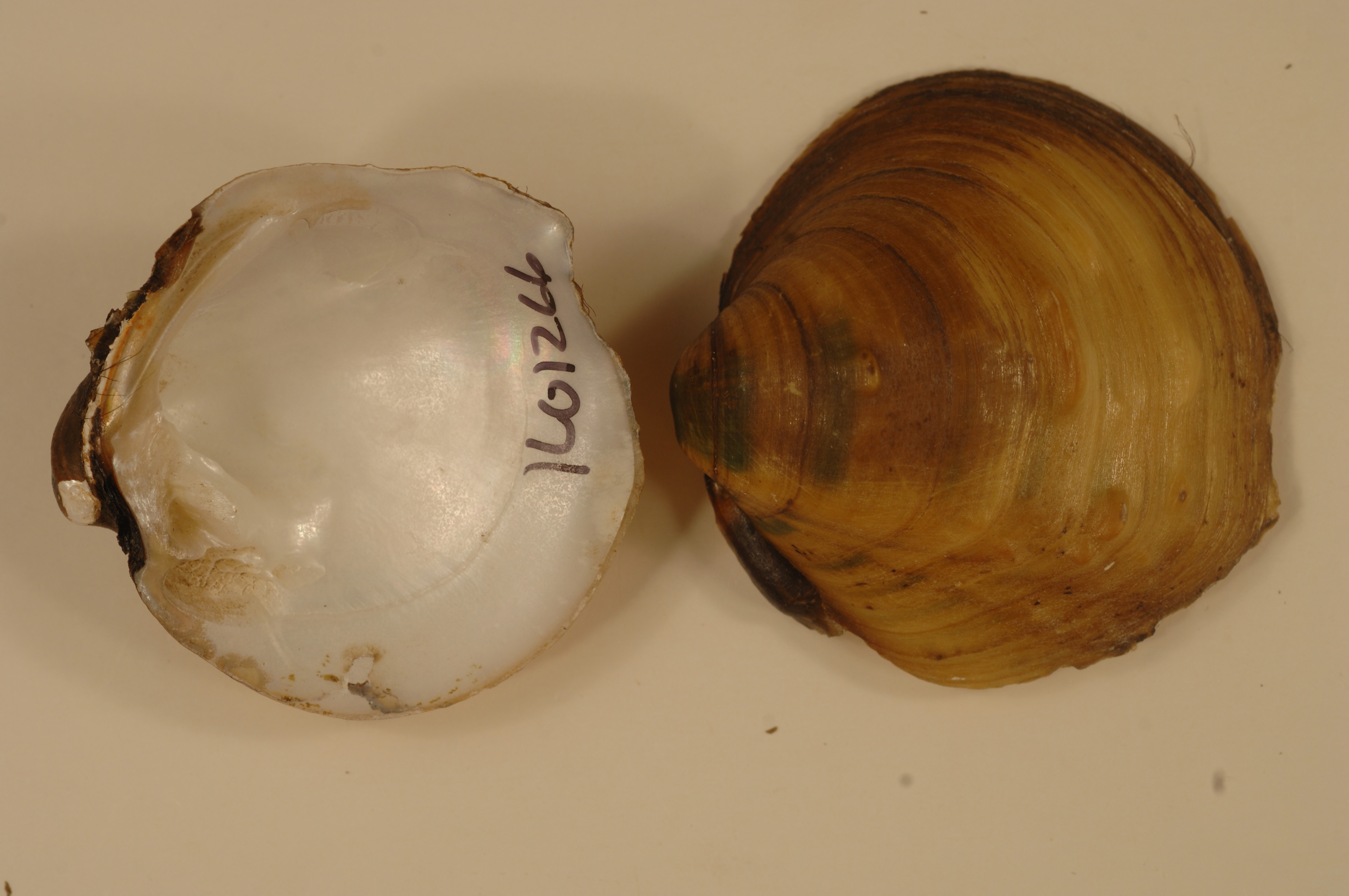 NCTC Freshwater Mussels Teaching Collection: Order: Unionoida Family: Unionidae Genus (ITIS): Amphinaias Species: pustulosa Williams et al.: Quadrula pustulosa Use to be: pustulosa pustolusa Location Name: Mississippi River near Cordova Location State: IL
