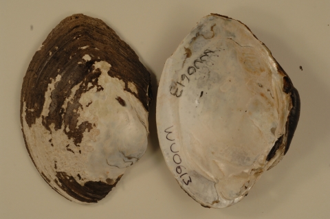 NCTC Freshwater Mussels Teaching Collection: Order: Unionoida Family: Unionidae Genus (ITIS): Lampsilis Species: cardium Williams et al.: Use to be: Location Name: Cacapon River, Upstream of WV-9 Bridge, Great Cacapon Location State: WV