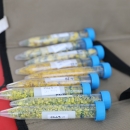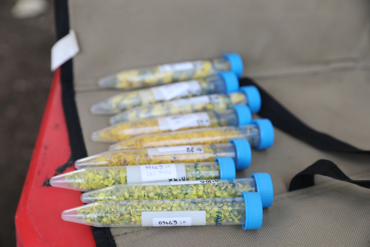 Biologists collect plant tissue in vials during non-lethal bee surveys.