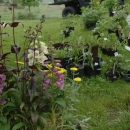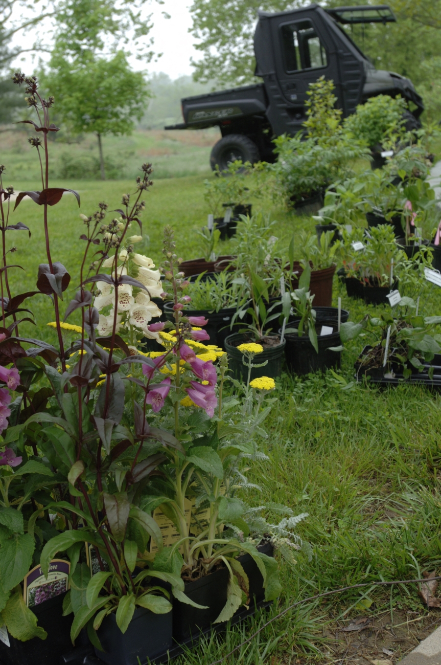 Plants and flowers in pots ready to be transplanted into the pollinator garden at NCTC.