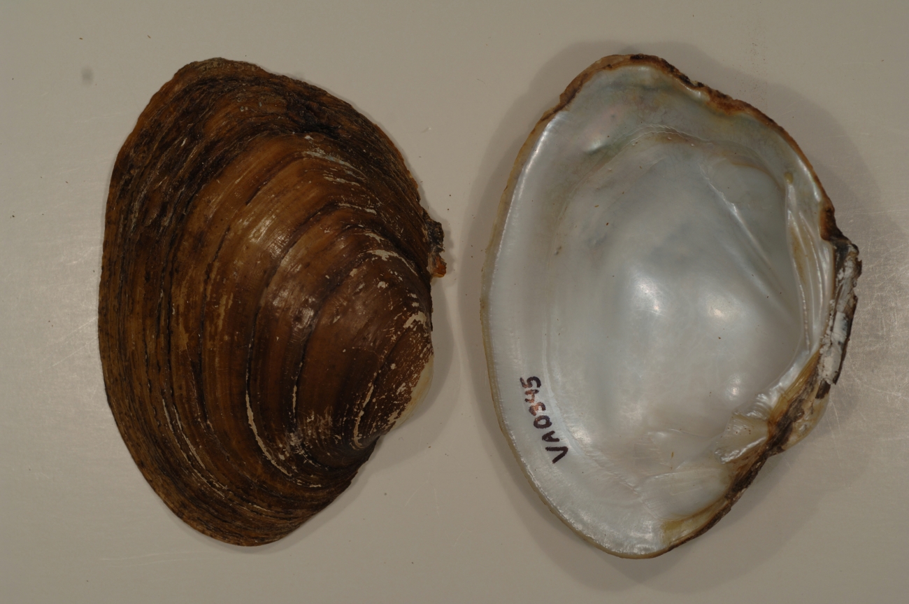NCTC Freshwater Mussels Teaching Collection: Order: Unionoida Family: Unionidae Genus (ITIS): Lampsilis Species: ovata Williams et al.: Use to be: Location Name: Clinch River, Tazewell Co. Location State: VA