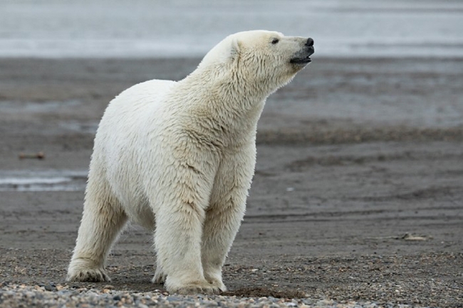 A polar bear sniffs at the air, catching the scent of food. Photo: Lisa Hupp/USFWS.