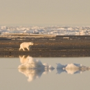 The Polar bear is walking along the shore at Arctic National Wildlife Refuge.