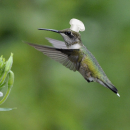 A ruby-throated hummingbird with a tiny chef's hat edited on. Photo credit: Bill Thompson/USFWS.