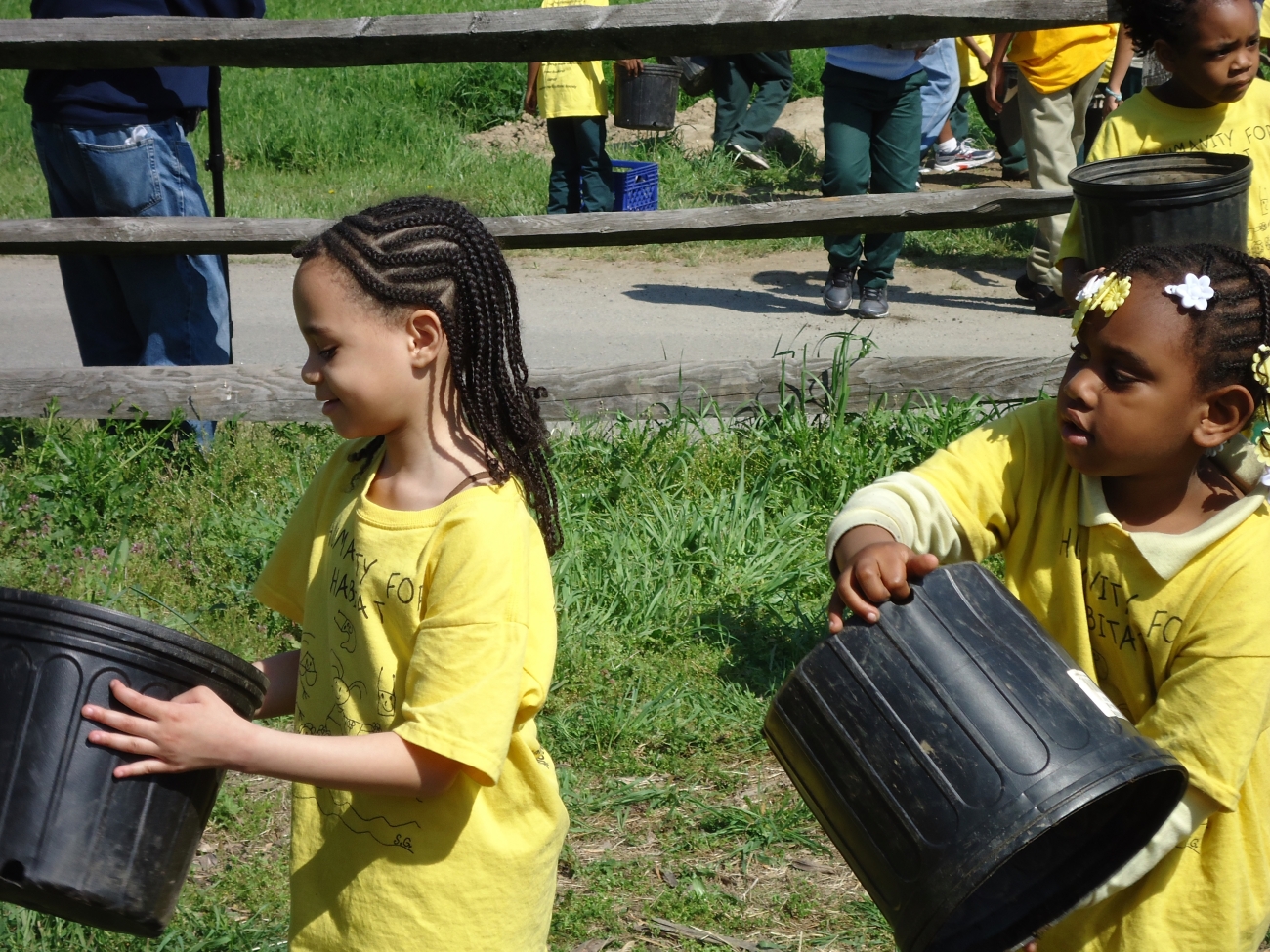 Children volunteers helping plant a pollinator garden at John Heinz National Wildlife Refuge, Philadelphia, PA. Image taken from USFWS Northeast Region Flickr page.