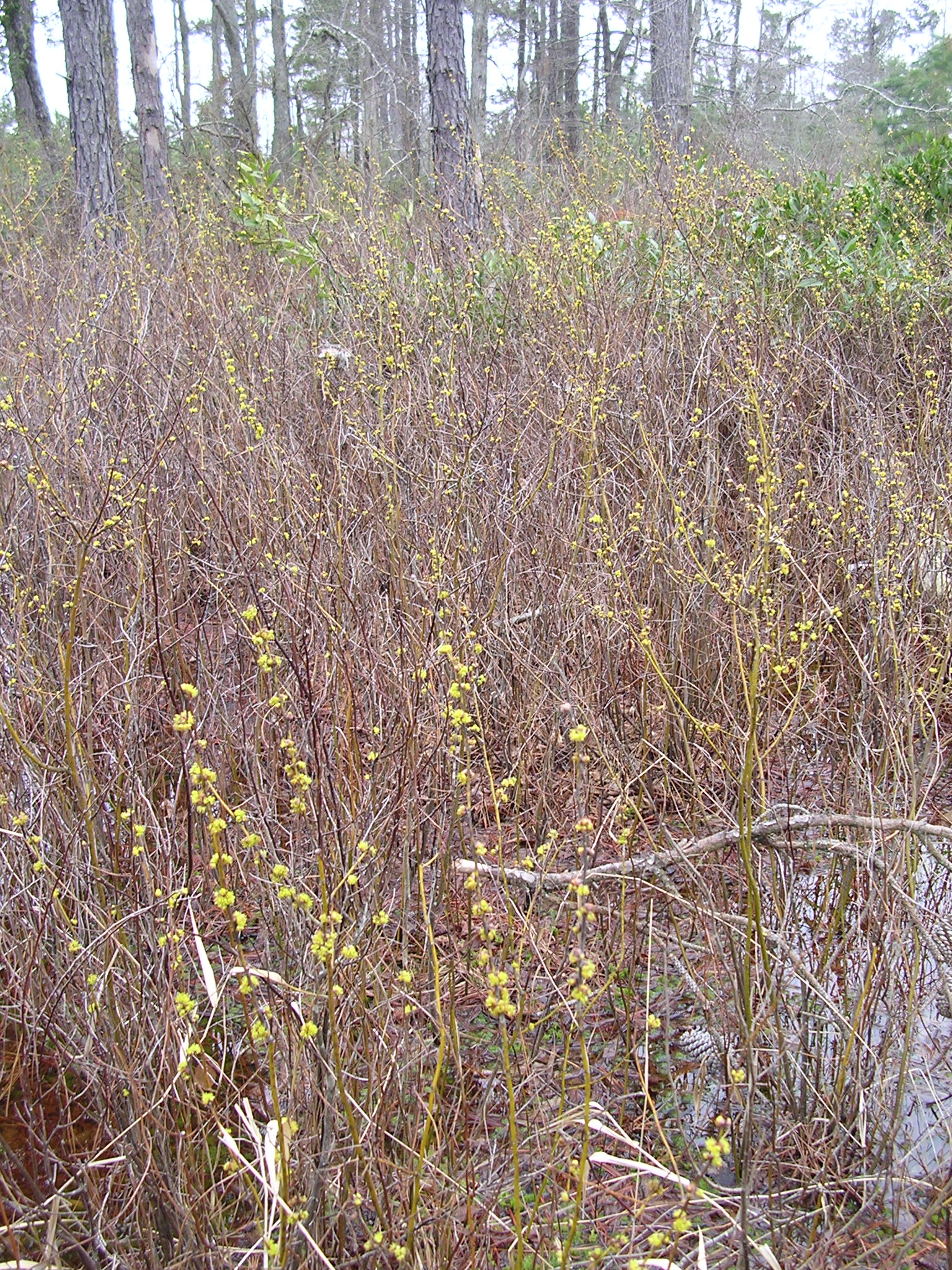 Lindera melissifolia habitat.Endangered Lindera melissifolia, pondberry, yellowish twigs indicative of species. Endangered Lindera melissifolia, pondberry, yellowish twigs indicative of species