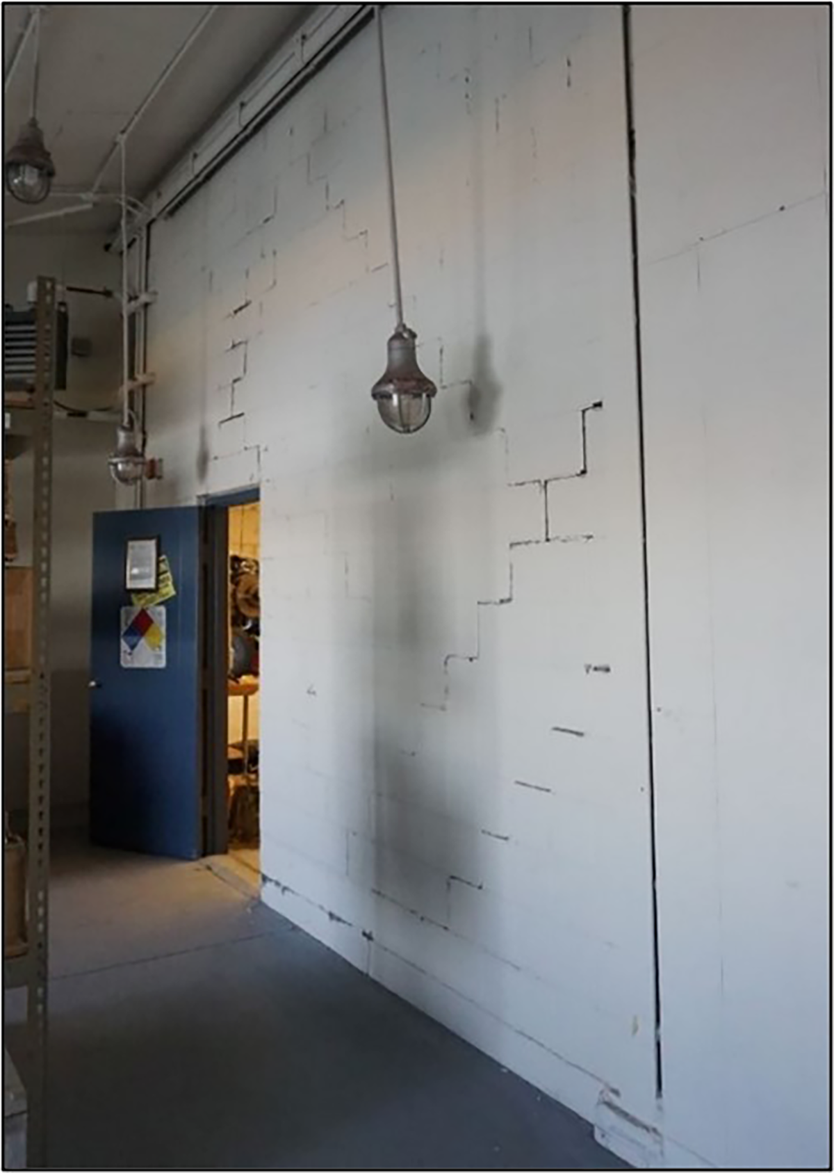 Post-2018 Earthquake cracking in the Hangar’s walls