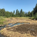 The same section of Hancock Springs post-restoration shows the normal curves of the stream restored and banks supported by mesh with vegetation.