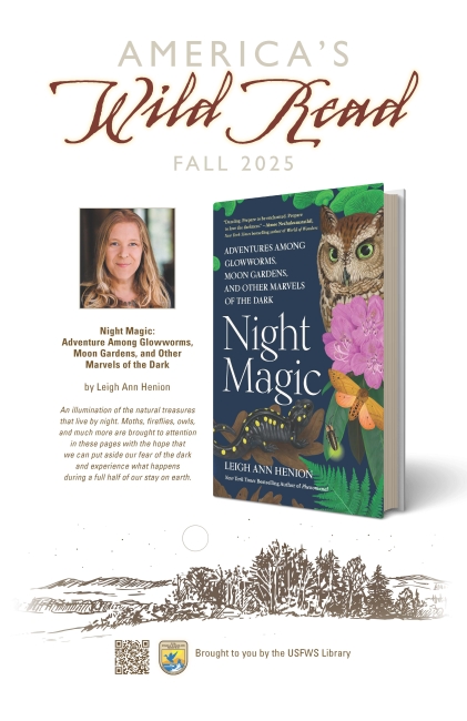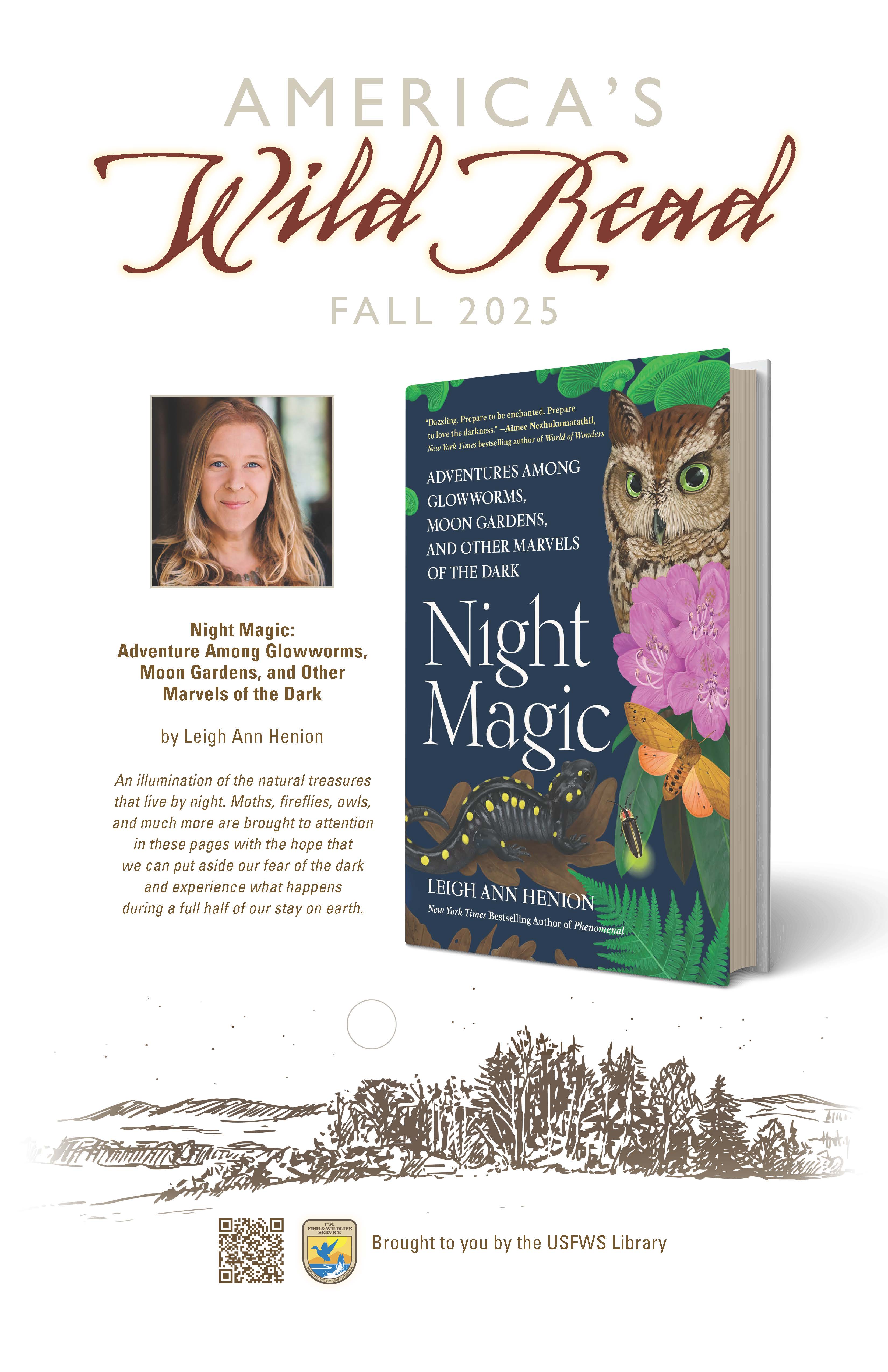 Poster for America’s Wild Read Fall 2025 with head and shoulders image of author and image of book cover for Night Magic.