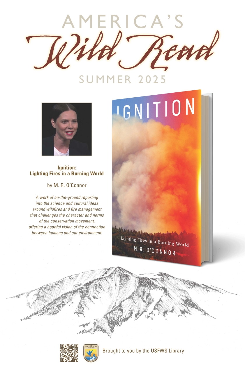 Poster for America's Wild Read Summer 2025 with head and shoulders image of author and image of book cover for Ignition.