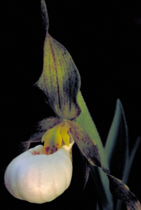 Close-up of white orchid blossom. Also called White lady's slipper. For additional resources about wildflowers visit the National Plants Database http://plants.usda.gov/.