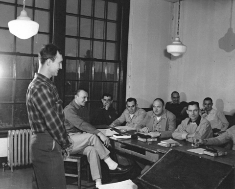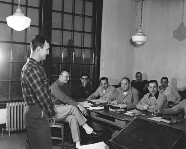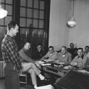 Mr. J.E. Miner, assistant district agent, predator control for the U.S. Fish and Wildlife Service, was one of the 17 instructors for the course. Twenty-six servicemen attended, and were housed at Ladd AFB. Sent in by Captain Yearout. FWS-997