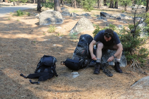 Preparing for hike to Center Basin through Sequoia and Kings Canyon National Parks.