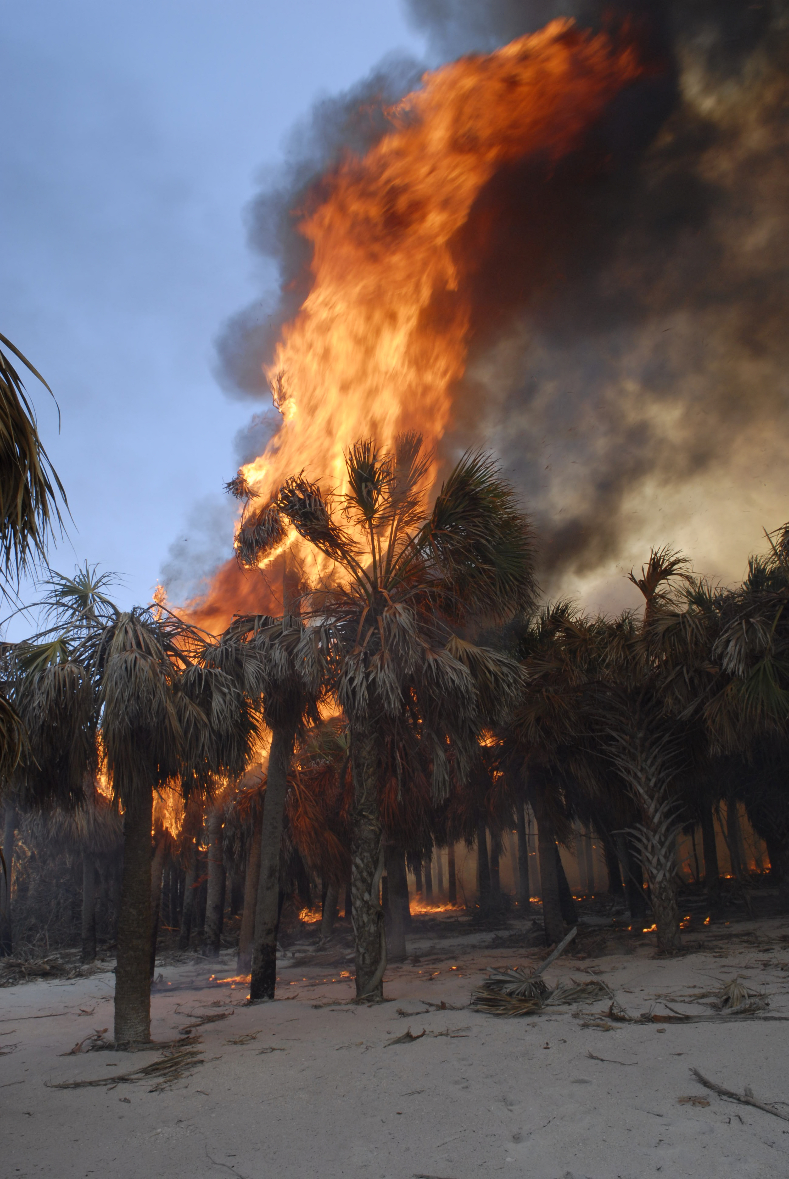 A prescribed burn roars up trees on Egmont Key National Wildlife Refuge