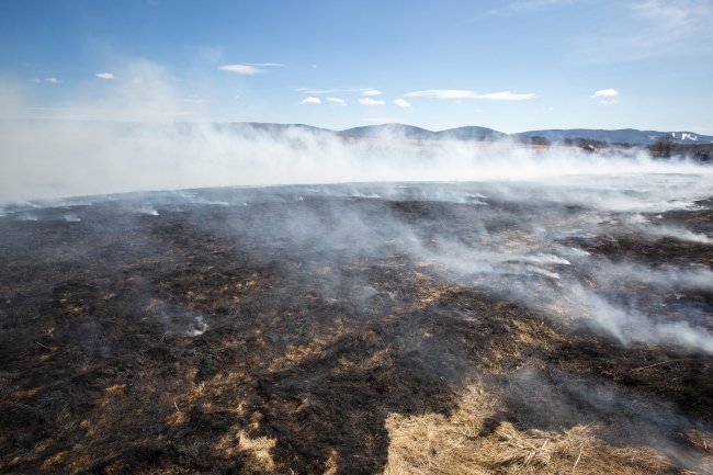 Smoke rising from burning grassland. Prescribed burn at Canaan Valley National Wildlife Refuge
