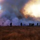 Controlled, prescribed burn on a prairie at Finley National Wildlife Refuge