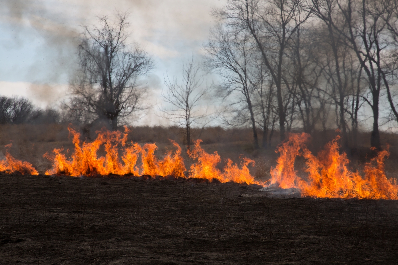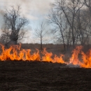 Grass fields on fire for prescribed burn