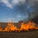 Grass fields on fire for prescribed burn