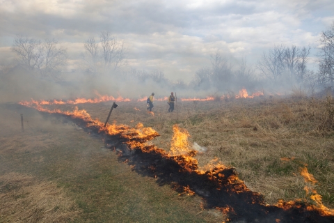 NCTC Prescribed Burn 2013. Fire crew setting fire to the grass. Prescribed Fire is the practice of burning to create better wildlife habitat