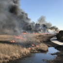 A prescribed fire burns through the marshes of West Pool, as seen from the Gull Pond Observation Tower.