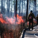 Members of a fire crew conduct a prescribed burn at the Boy Scout Road interpretive site.