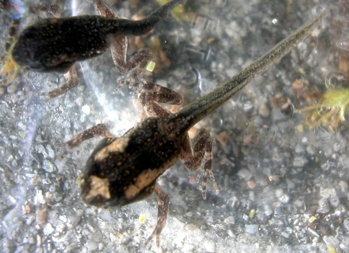 Spanish name: Renacuajo de Sapo Concho Puertorriqueño. Late developmental stage of the tadpole metamorphosis. Threatened species