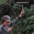 Project leader for the PR Parrot Program in Rio Grande, Marisa Lopez monitors the release of the parrots using telemetry.