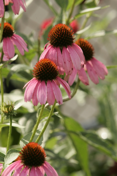 This picture is a close-up of a few purple coneflowers
