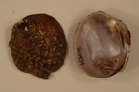 NCTC Freshwater Mussels Teaching Collection: Order: Unionoida Family: Unionidae Genus (ITIS): Cyclonaias Species: tuberculata Williams et al.: Use to be: Location Name: Duck River, Milltown Location State: TN