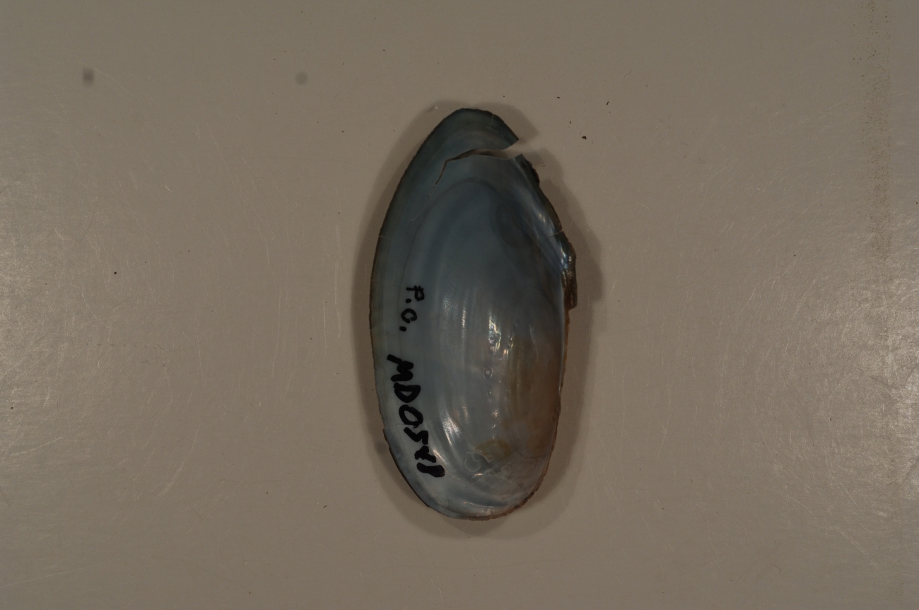 NCTC Freshwater Mussels Teaching Collection: Order: Unionoida Family: Unionidae Genus (ITIS): Pyganodon Species: cataracta(inside) Williams et al.: Use to be: Location Name: Location State: MD