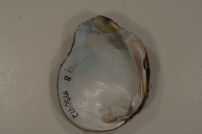 NCTC Freshwater Mussels Teaching Collection: Order: Unionoida Family: Unionidae Genus (ITIS): Quadrula Species: apiculata (inside) Williams et al.: Use to be: Location Name: Location State: MS