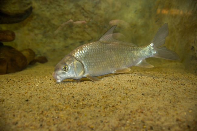 Quillback carpsucker (Carpiodes cyprinus) '' in aquarium at Gavins Point National Fish Hatchery, South Dakota