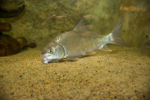 Quillback carpsucker (Carpiodes cyprinus) '' in aquarium at Gavins Point National Fish Hatchery, South Dakota