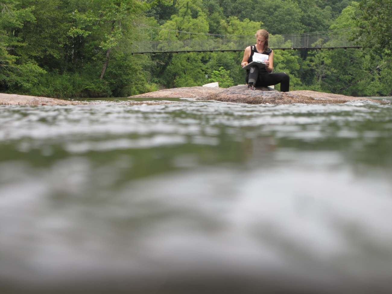 Rachael Hoch of the N.C. Wildlife Resources Commission takes field notes during a long-term look at the status of spotfin chub in the Little Tennessee River.