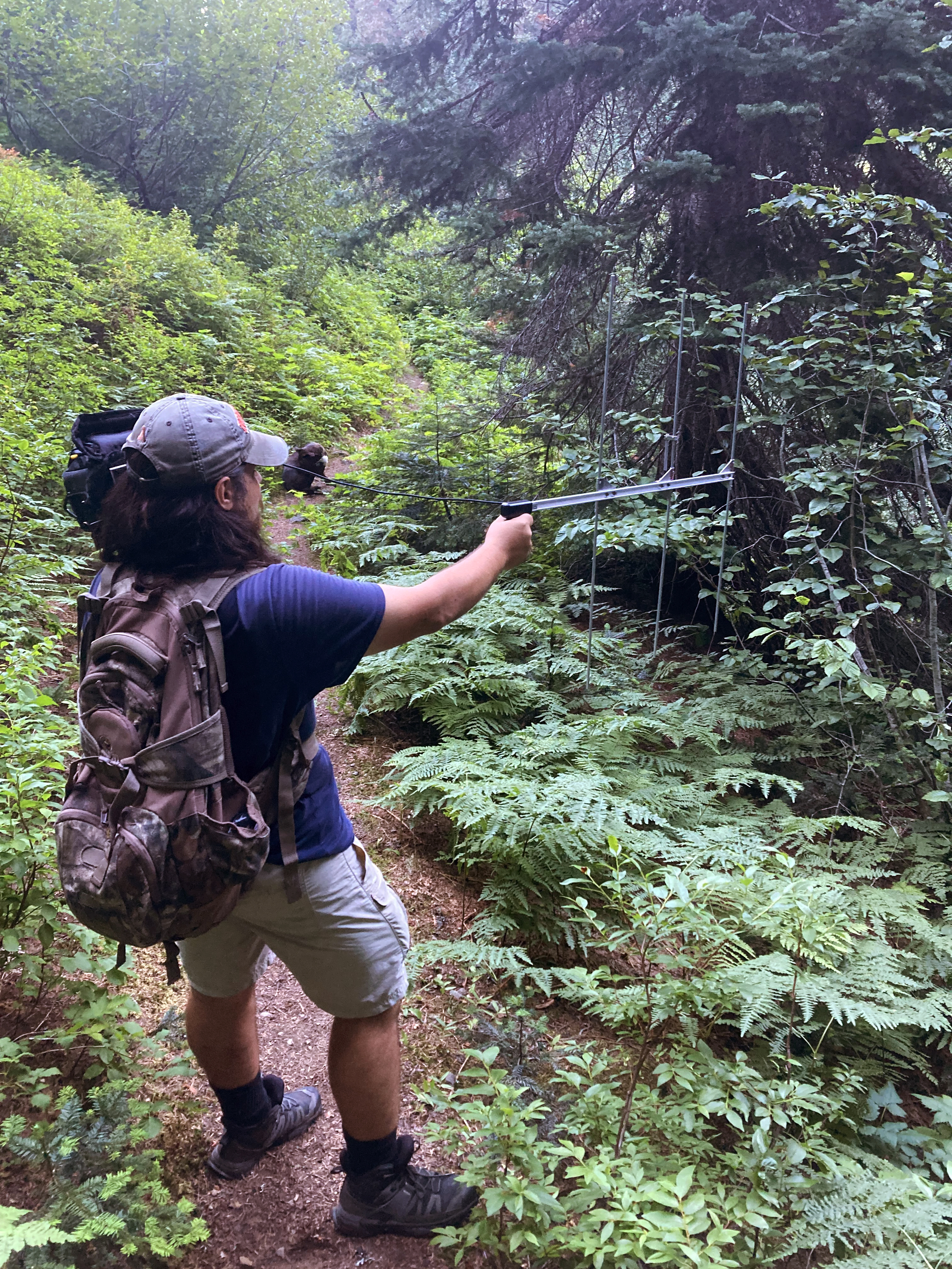 Michael Dello Russo tracks tagged beavers with a hand-held radio-telemetry antenna.