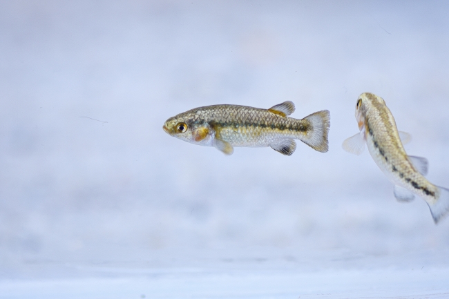 Railroad Valley springfish are federally listed as threatened. They are found in six thermal springs in central Nevada. The fish have adapted to survive in 86-100 degree Fahrenheit waters, water temperatures that relatively few fish can endure. Threats to recovery include invasive fish and habitat modification. Credit: Robyn Gerstenslager/USFWS