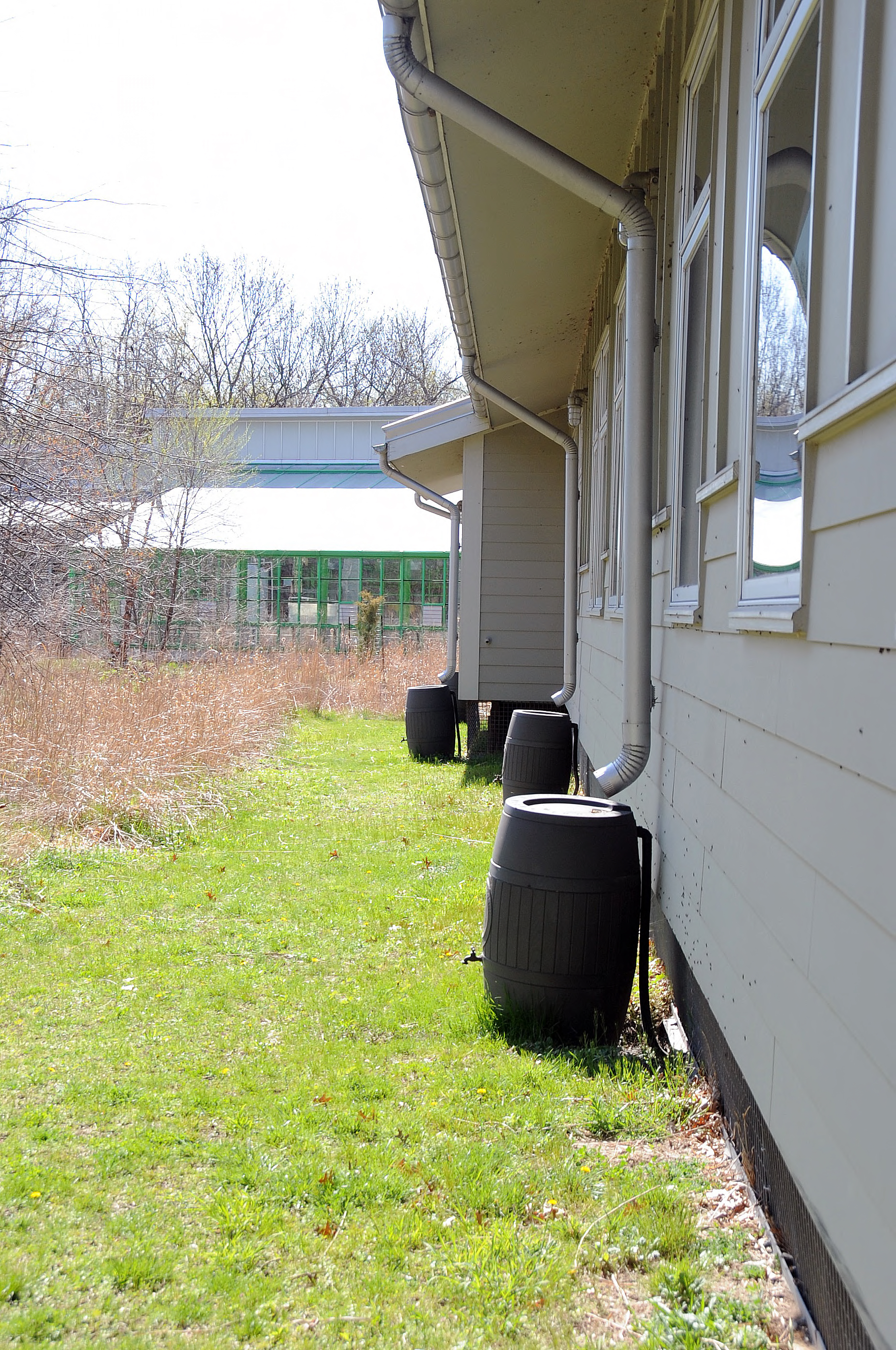 Rain barrels are seen at a distance at the John Heinz National wildlife Refuge at Tinicum.