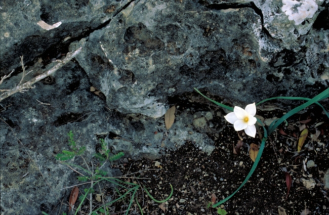 Single white blossom with thin dark green leaves. For additional resources about wildflowers visit the National Plants Database: National Plants Database http://plants.usda.gov/.