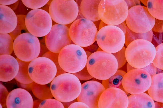 Close-up of eggs from Rainbow trout (Oncorhynchus mykiss).