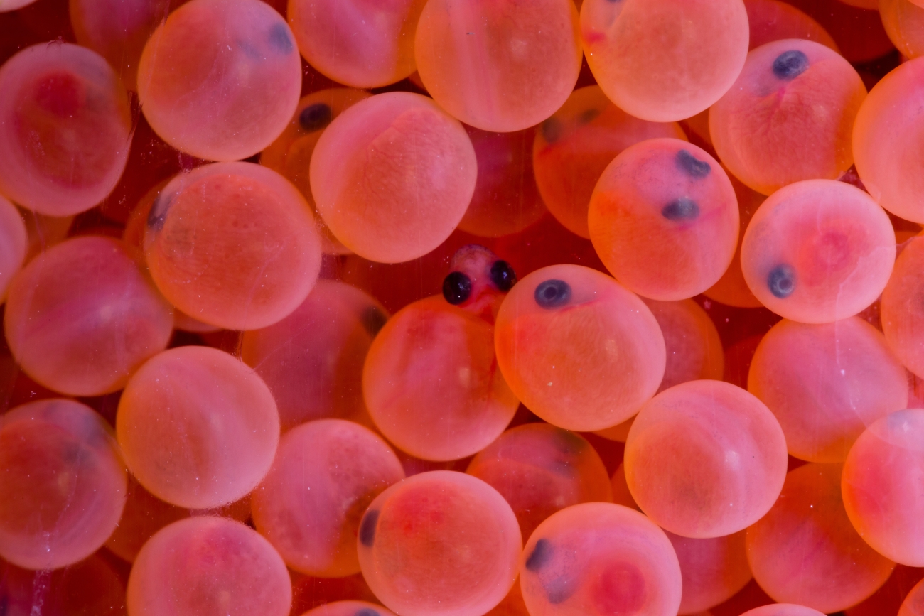 Close-up of eggs from Rainbow trout (Oncorhynchus mykiss).