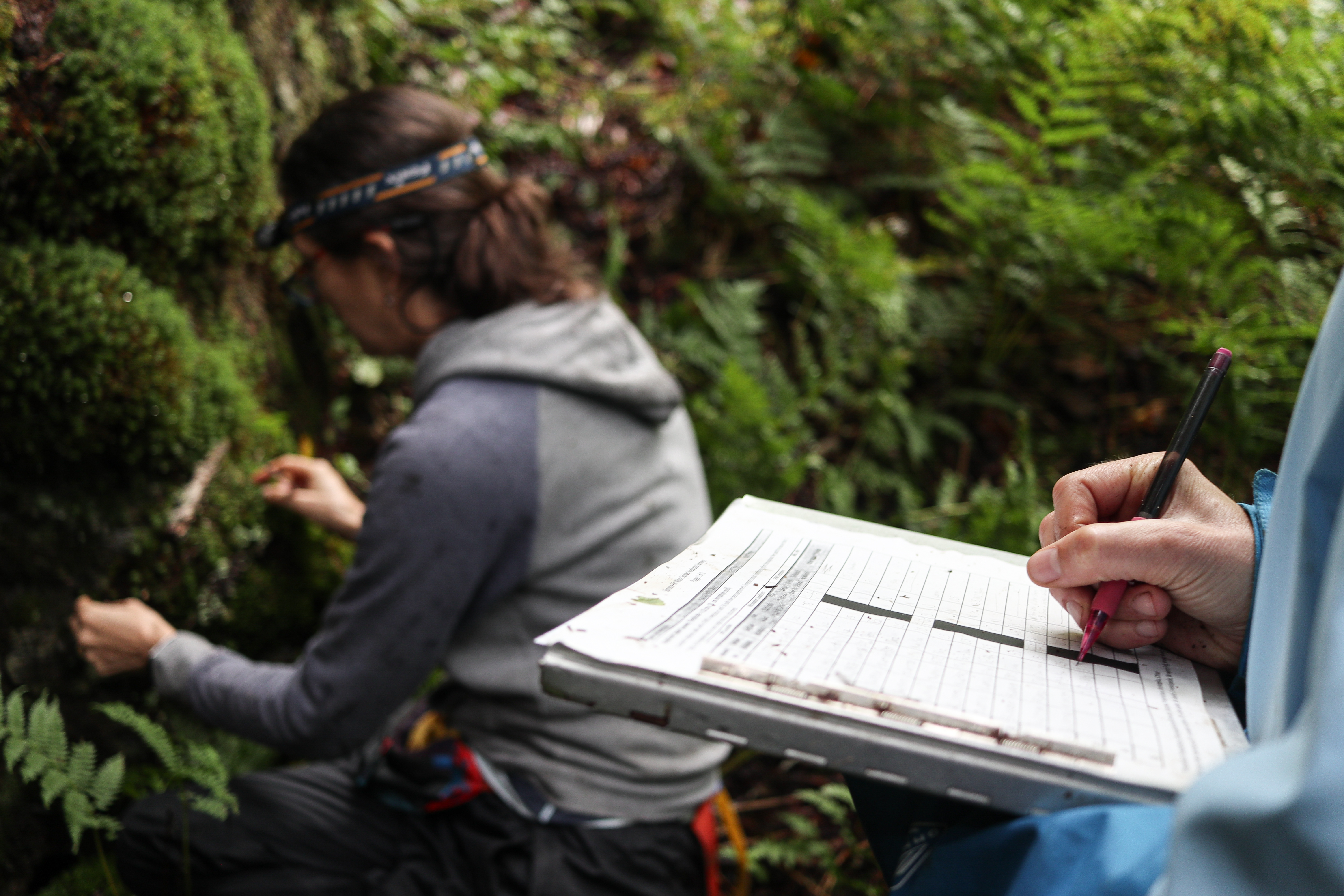 Recording data while monitoring spruce-fir moss spiders at Whitetop Mountain, Virginia