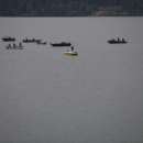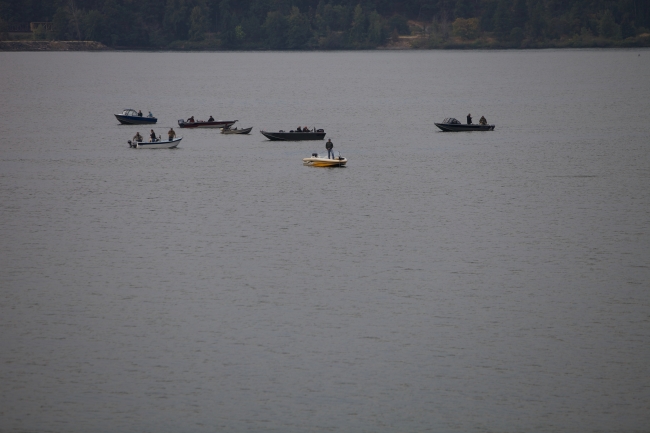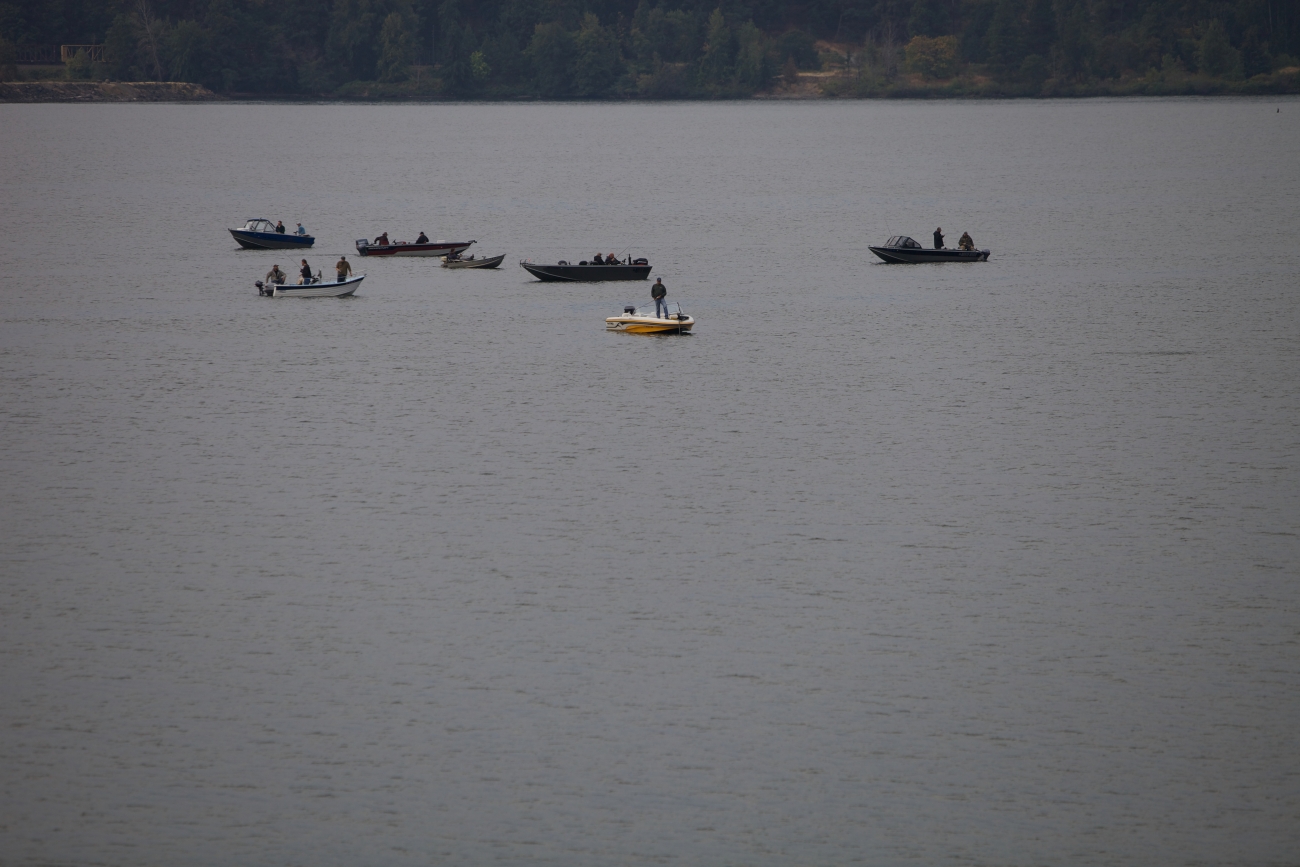 Anglers on shore and in boats fish for Fall Salmon on the Columbia River