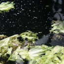 Young northern red-bellied cooters in foster care at a school in Massachusetts enjoying the perks: unlimited lettuce in a hot-tub sized aquaculture tank.