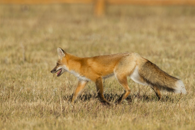 A red fox roaming in a field at Red Rock Lakes National Wildlife Refuge searches for rodents. Photo by James "Newt" Perdue/USFWS Volunteer.
