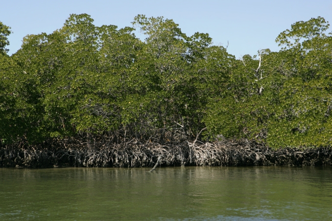 Red mangrove trees at water edge