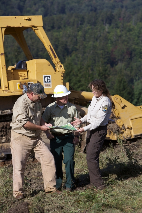 U.S. Fish and Wildlife Service partners with conservation agencies for Red spruce restoration. Restoration of strip mined lands. Bartow, WV, Monongahela National Forest.