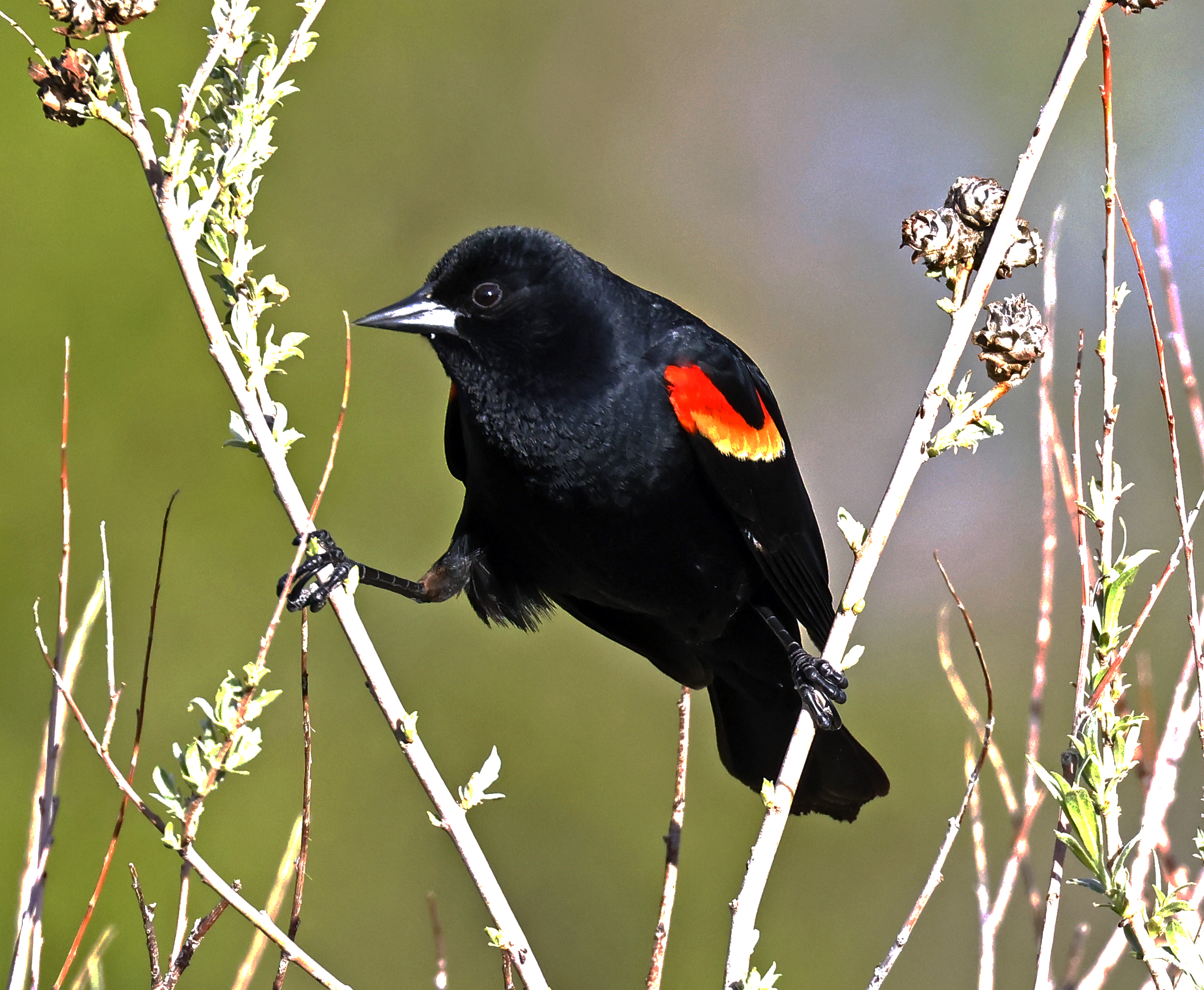 Red-winged blackbird perching